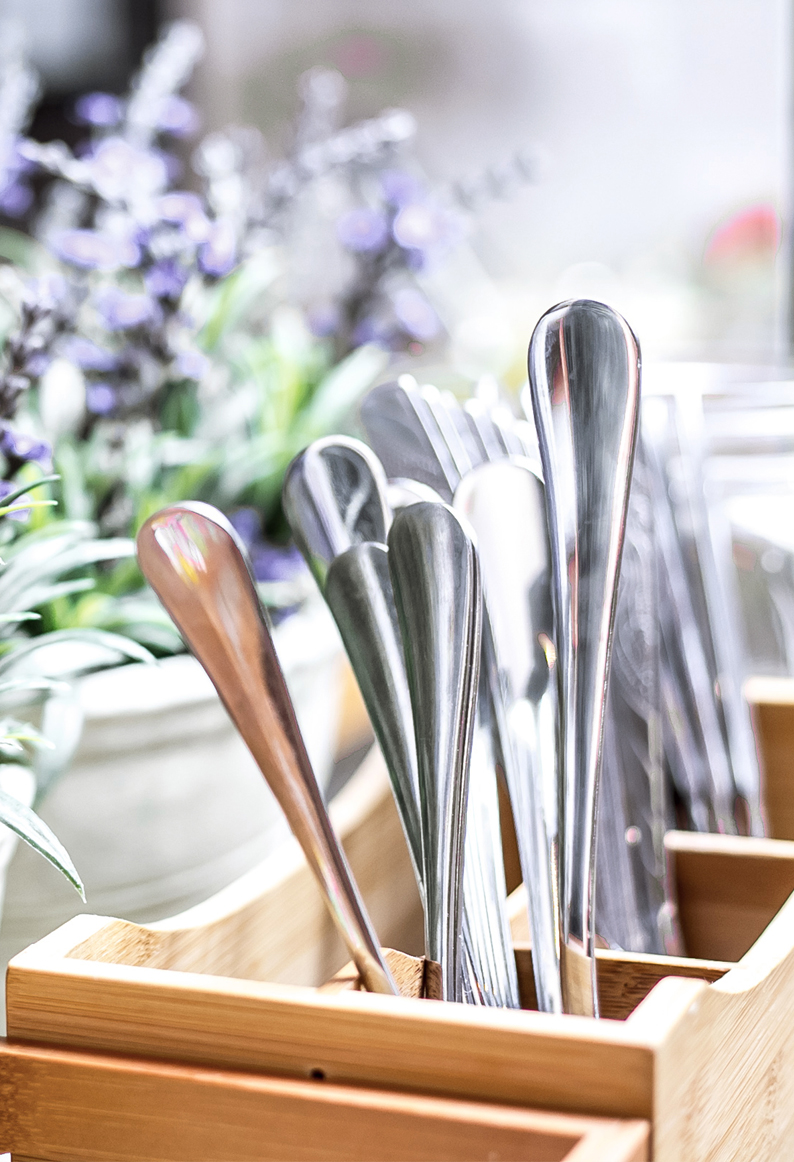 • tányérok, poharak, evőeszközök